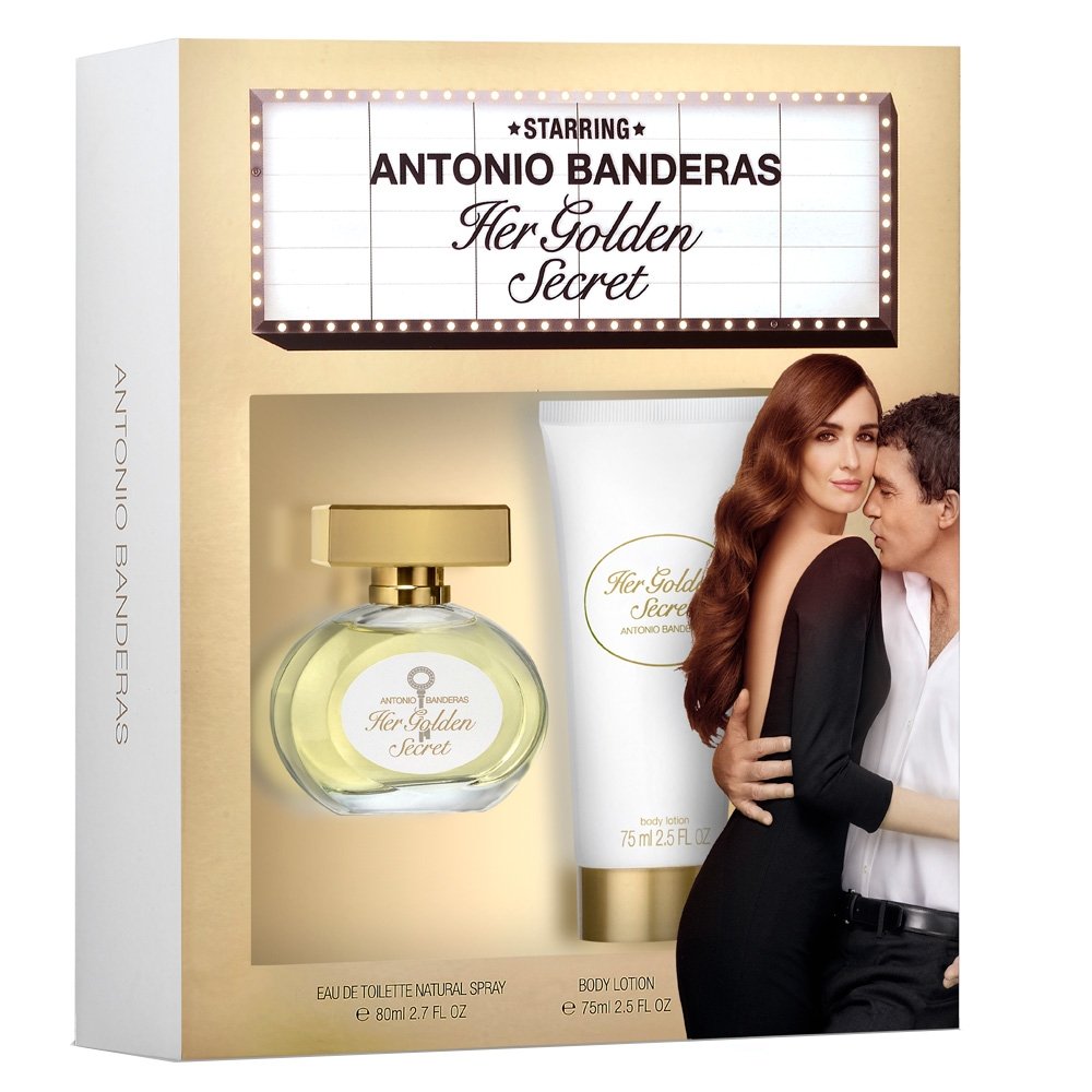 Antonio Banderas Her Golden Secret dovanų rinkinys, tualetinis vanduo 80 ml + kūno losjonas 75 ml
