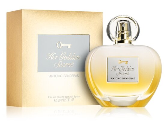 Antonio Banderas Her Golden išsivysto į gundančias vaisių natas, kuriose dominuoja persikai, obuoliai, bergamotės ir mandarinai. Širdis pražysta gardenijų ir apelsinų žiedais, gaivina juodųjų serbentų lašeliais. Svaiginantis pačiulis, vanilė, kedras ir muskusas suteikia aromatui prabangos.
