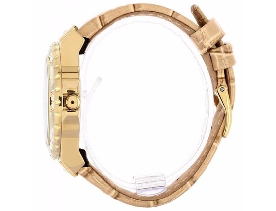 Charakteristikos: Korpusas - plienas Atsparumas vandeniui - 5 ATM Dirželis - oda, ruda Stiklas - mineralinis Matmenys - 38 x 10 mm Korpuso forma - apvalus Ciferblato spalva - balta Stilius - madinga Būklė - nauja