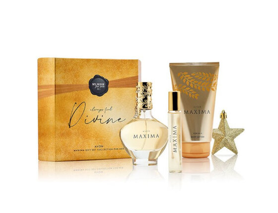 Rinkinį sudaro: Eau de Parfum Maxi ma EDP 50 ml Eau de Parfum Maxi ma EDP - minipack 10 ml Kūno losjonas Maxi ma 150 ml