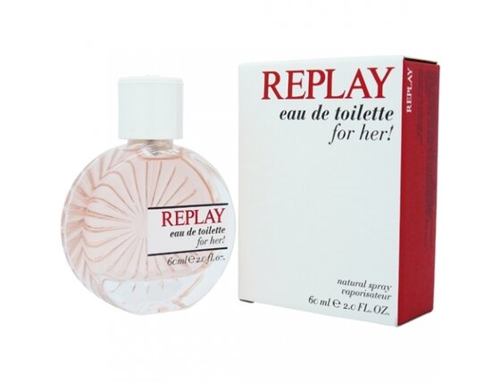 „Replay for Her“ – tai tualetinis vanduo, kuriame kruopščiai atrinktos sudedamosios dalys, dėl kurių gaunamas kvapas, kuriam lemta tapti amžinai žaliuojančiu kaip geriausių prekių ženklų ir mados namų kvepalai.