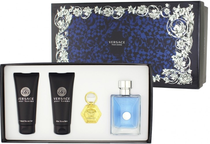 Versace Versace pour Homme dovanų rinkinys, tualetinis vanduo 100 ml + 100 ml balzamas po skutimosi + 100 ml dušo želė + raktų pakabukas