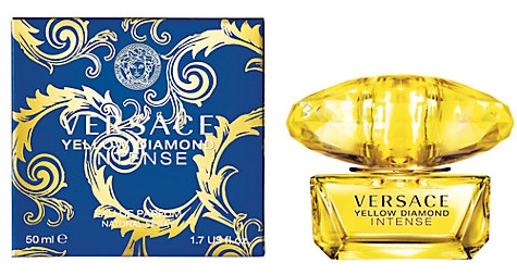 Versace Yellow Diamond Intense yra gilesnė Yellow Diamond aromato interpretacija. Tai energijos, spindesio, grynumo ir skaidrumo koncentratas. Gėlių kvapas su gardžiais vaisių ir medienos akcentais, išskirtinis ir patvarus. Pradžioje jis užburia Viduržemio jūros regiono bergamočių, citrinų ir tauriųjų nerolių rafinuotumu kvapą gniaužiančiu deriniu su nenugalimais ir patraukliais kriaušių minkštimo akcentais. Širdis – tai intensyvaus ir grakštaus moteriškumo šventė, kuri išreiškiama kreminėmis, aksominėmis jazminų žiedlapių ir osmanto natomis, kurias papildo tauriosios apelsinų žiedų ir frezijų natos. Jausmingai apgaubiančio pagrindo pagrindas – gilios ir energingos gintaro medienos ir gvajako natos, praturtintos dervos aistra ir muskuso gundymu.